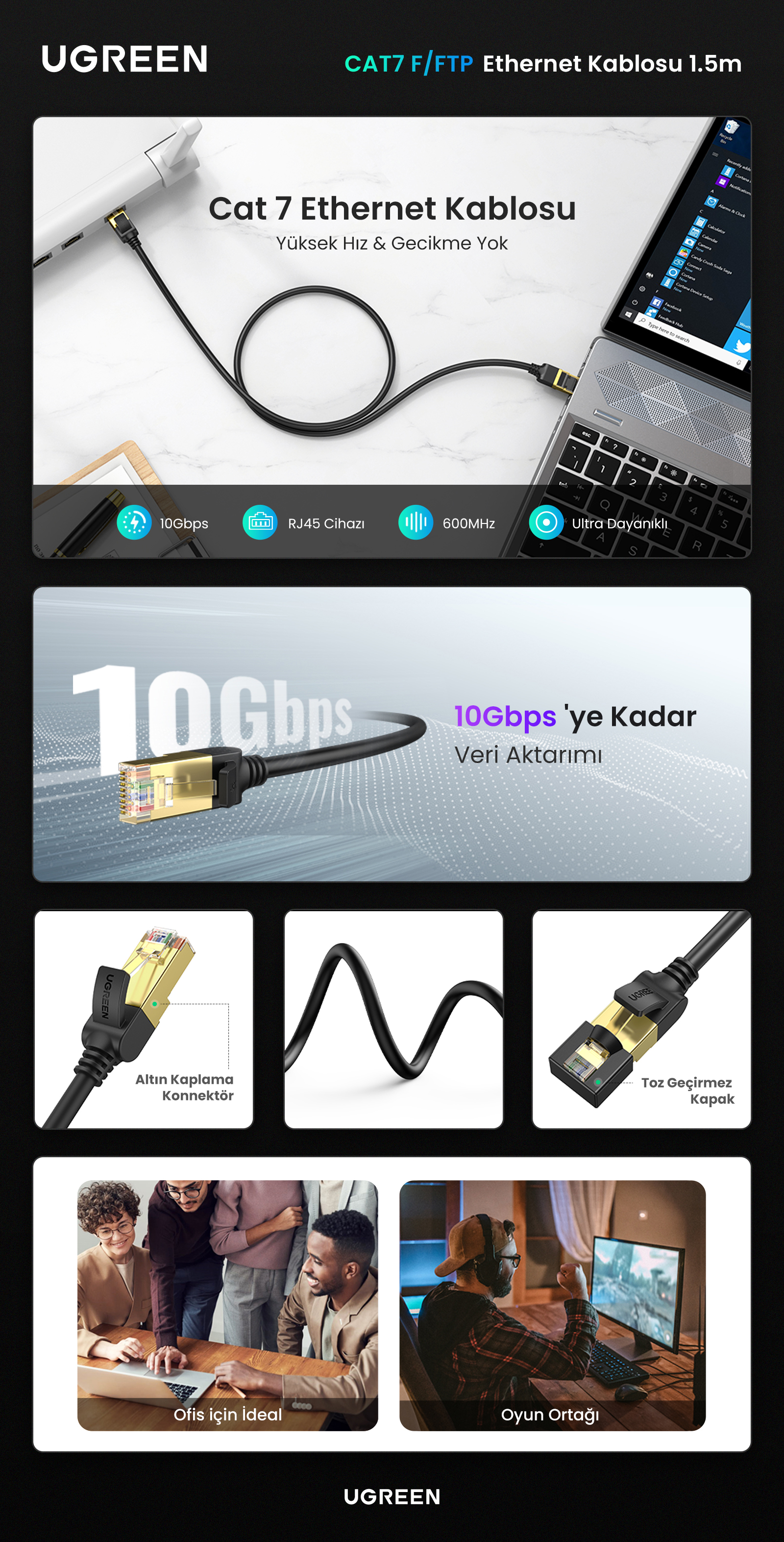 - Ugreen 11277 CAT7 F/FTP Ethernet Kablosu 1.5 Metre