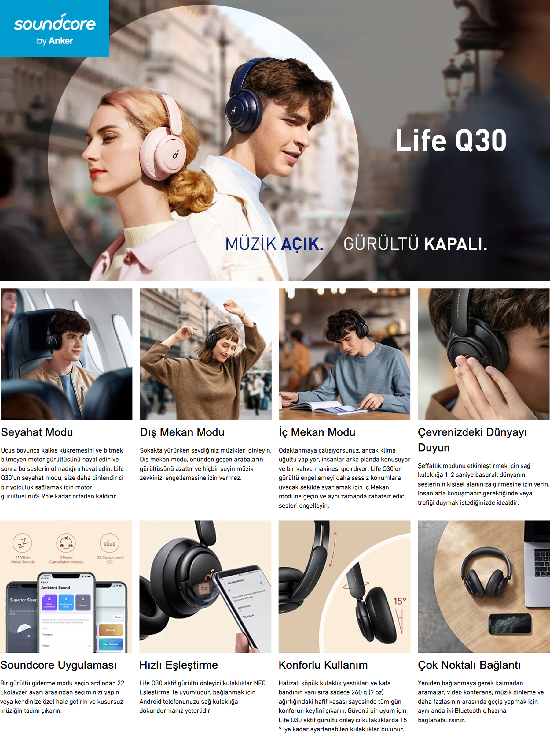 Soundcore Life Q30 aktif gürültü önleyici kulaklıklar